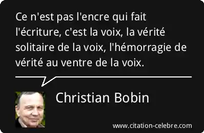 Ce n'est pas l'encre qui fait l'écriture, c'est la voix, la vérité solitaire de la voix, l'hémorragie de vérité au ventre de la voix.