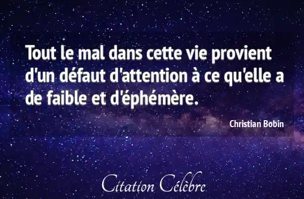 Tout le mal dans cette vie provient d'un défaut d'attention à ce qu'elle a de faible et d'éphémère.