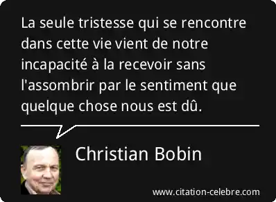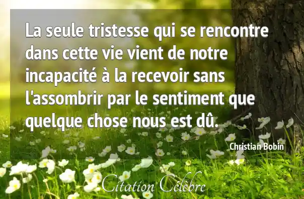 La seule tristesse qui se rencontre dans cette vie vient de notre incapacité à la recevoir sans l'assombrir par le sentiment que quelque chose nous est dû.