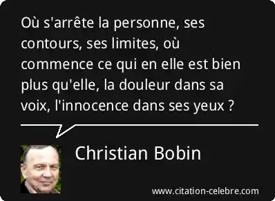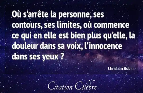 Où s'arrête la personne, ses contours, ses limites, où commence ce qui en elle est bien plus qu'elle, la douleur dans sa voix, l'innocence dans ses yeux ?
