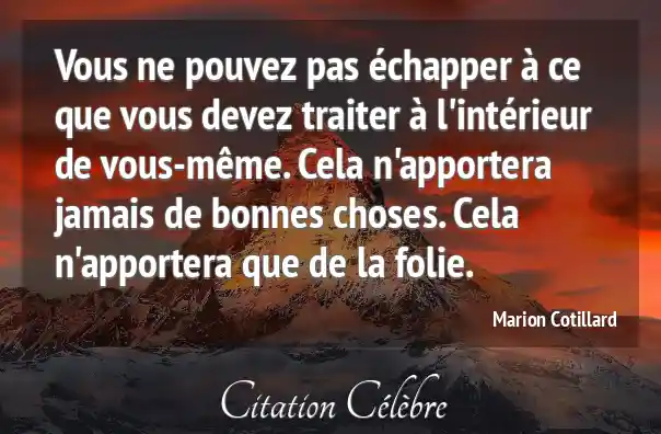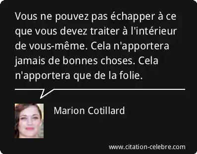 Vous ne pouvez pas échapper à ce que vous devez traiter à l'intérieur de vous-même. Cela n'apportera jamais de bonnes choses. Cela n'apportera que de la folie.