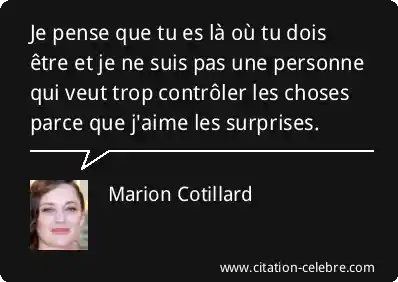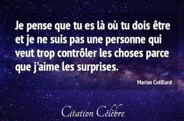 Je pense que tu es là où tu dois être et je ne suis pas une personne qui veut trop contrôler les choses parce que j'aime les surprises.