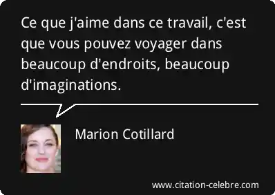 Ce que j'aime dans ce travail, c'est que vous pouvez voyager dans beaucoup d'endroits, beaucoup d'imaginations.
