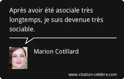 Après avoir été asociale très longtemps, je suis devenue très sociable.