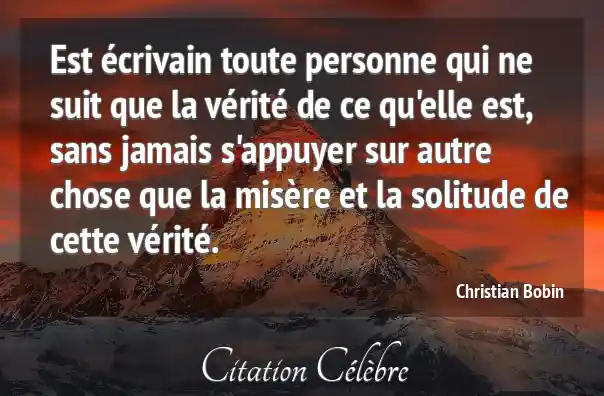 Est écrivain toute personne qui ne suit que la vérité de ce qu'elle est, sans jamais s'appuyer sur autre chose que la misère et la solitude de cette vérité.