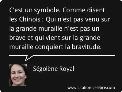 C'est un symbole. Comme disent les Chinois : Qui n'est pas venu sur la grande muraille n'est pas un brave et qui vient sur la grande muraille conquiert la bravitude.