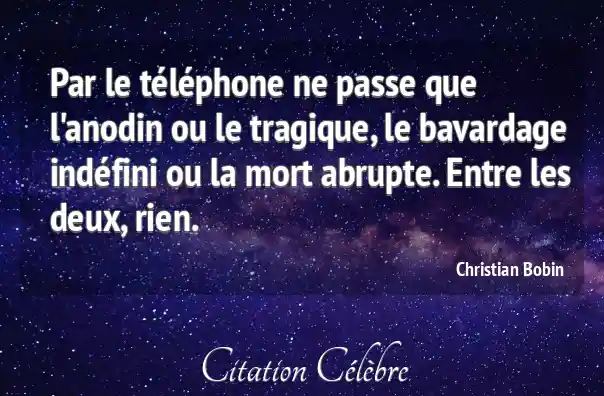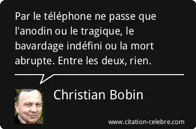 Par le téléphone ne passe que l'anodin ou le tragique, le bavardage indéfini ou la mort abrupte. Entre les deux, rien.
