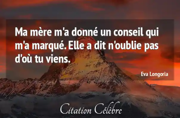 Ma mère m'a donné un conseil qui m'a marqué. Elle a dit n'oublie pas d'où tu viens.