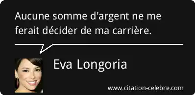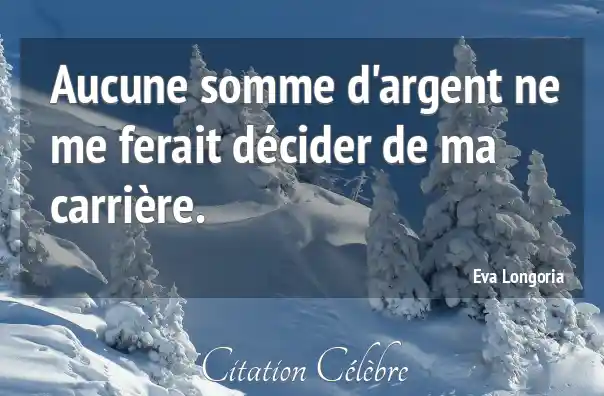 Aucune somme d'argent ne me ferait décider de ma carrière.