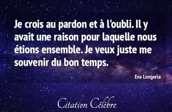 Je crois au pardon et à l'oubli. Il y avait une raison pour laquelle nous étions ensemble. Je veux juste me souvenir du bon temps.