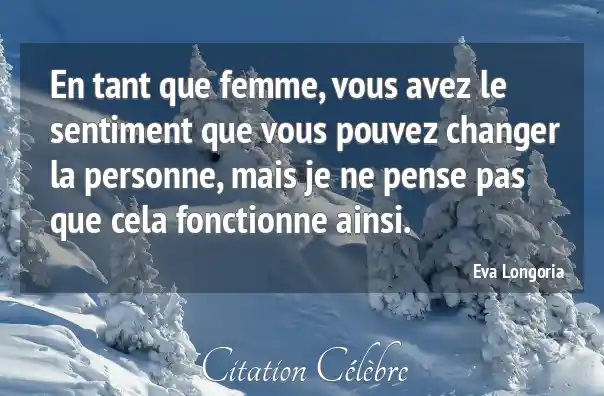 En tant que femme, vous avez le sentiment que vous pouvez changer la personne, mais je ne pense pas que cela fonctionne ainsi.