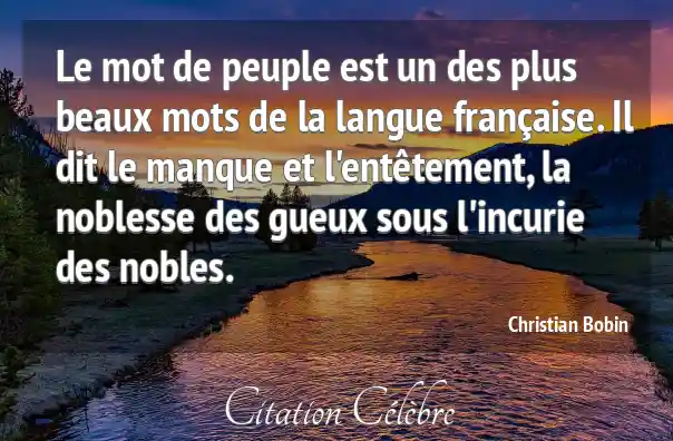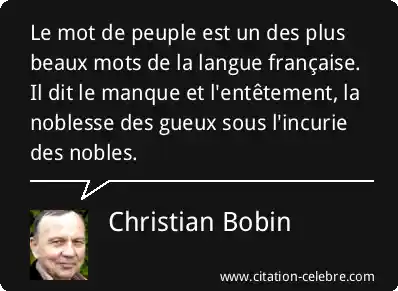 Le mot de peuple est un des plus beaux mots de la langue française. Il dit le manque et l'entêtement, la noblesse des gueux sous l'incurie des nobles.