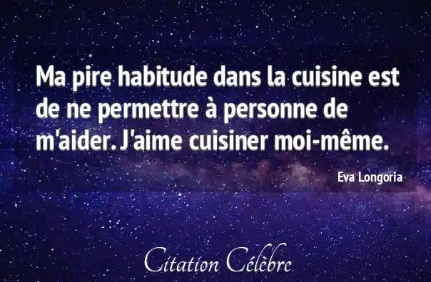 Ma pire habitude dans la cuisine est de ne permettre à personne de m'aider. J'aime cuisiner moi-même.