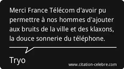 Merci France Télécom d'avoir pu permettre à nos hommes d'ajouter aux bruits de la ville et des klaxons, la douce sonnerie du téléphone.