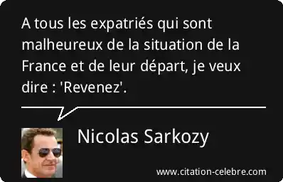A tous les expatriés qui sont malheureux de la situation de la France et de leur départ, je veux dire : 'Revenez'.