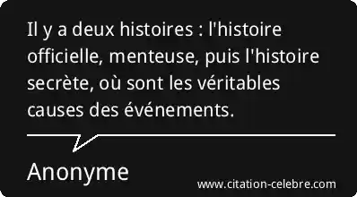 Il y a deux histoires : l'histoire officielle, menteuse, puis l'histoire secrète, où sont les véritables causes des événements.