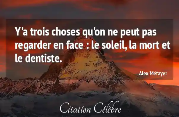 Y'a trois choses qu'on ne peut pas regarder en face : le soleil, la mort et le dentiste.