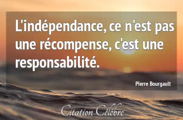 L'indépendance, ce n'est pas une récompense, c'est une responsabilité.