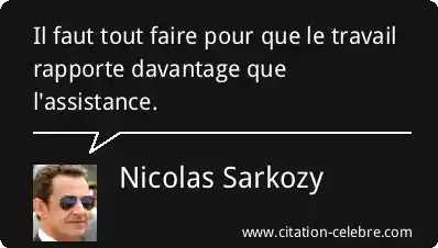 Citation de Nicolas Sarkozy sur Travail, Assistance et Davantage