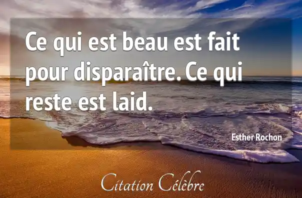 Ce qui est beau est fait pour disparaître. Ce qui reste est laid.