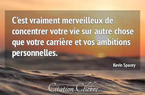 C'est vraiment merveilleux de concentrer votre vie sur autre chose que votre carrière et vos ambitions personnelles.