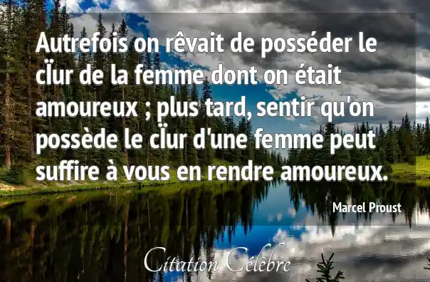 Autrefois on rêvait de posséder le cÏur de la femme dont on était amoureux ; plus tard, sentir qu'on possède le cÏur d'une femme peut suffire à vous en rendre amoureux.