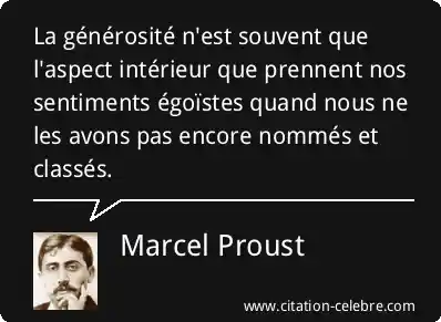 La générosité n'est souvent que l'aspect intérieur que prennent nos sentiments égoïstes quand nous ne les avons pas encore nommés et classés.