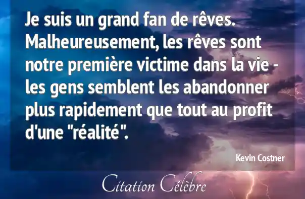 Je suis un grand fan de rêves. Malheureusement, les rêves sont notre première victime dans la vie - les gens semblent les abandonner plus rapidement que tout au profit d'une "réalité".