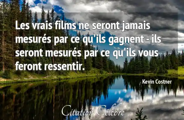 Citation Kevin Costner ressentir : Les vrais films ne seront jamais mesurés par ce qu'ils...