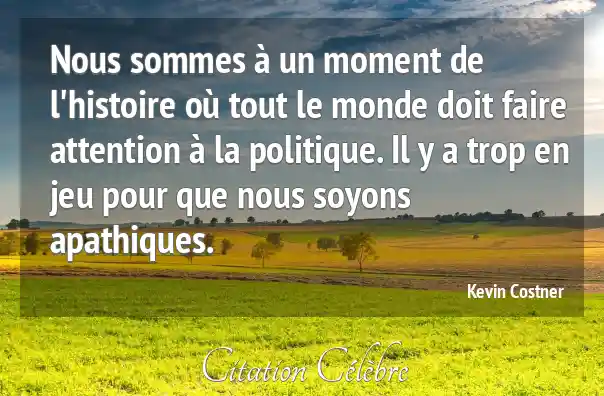 Nous sommes à un moment de l'histoire où tout le monde doit faire attention à la politique. Il y a trop en jeu pour que nous soyons apathiques.