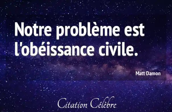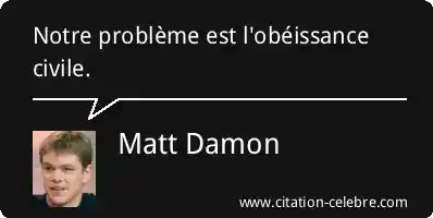 Citation Matt Damon probleme : Notre problème est l'obéissance civile....