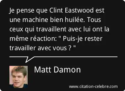 Je pense que Clint Eastwood est une machine bien huilée. Tous ceux qui travaillent avec lui ont la même réaction: " Puis-je rester travailler avec vous ? "