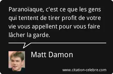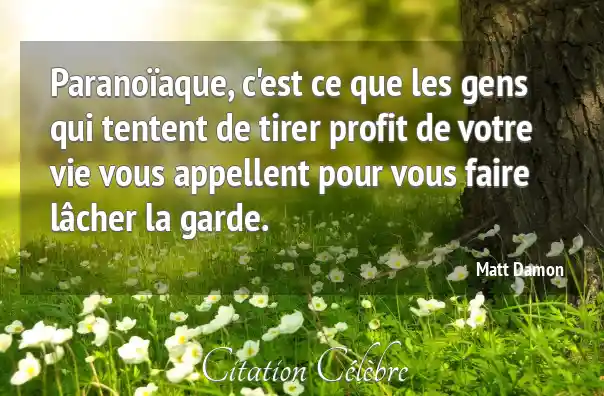 Paranoïaque, c'est ce que les gens qui tentent de tirer profit de votre vie vous appellent pour vous faire lâcher la garde.