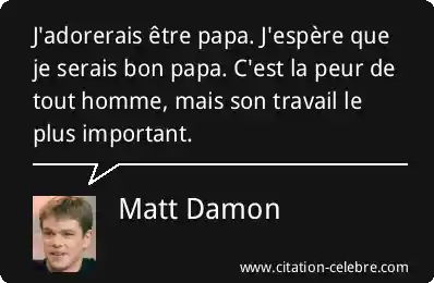 J'adorerais être papa. J'espère que je serais bon papa. C'est la peur de tout homme, mais son travail le plus important.
