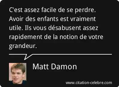 C'est assez facile de se perdre. Avoir des enfants est vraiment utile. Ils vous désabusent assez rapidement de la notion de votre grandeur.