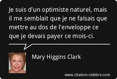 Je suis d'un optimiste naturel, mais il me semblait que je ne faisais que mettre au dos de l'enveloppe ce que je devais payer ce mois-ci.