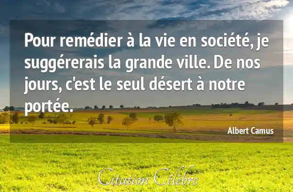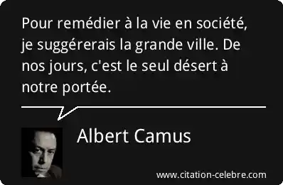 Pour remédier à la vie en société, je suggérerais la grande ville. De nos jours, c'est le seul désert à notre portée.