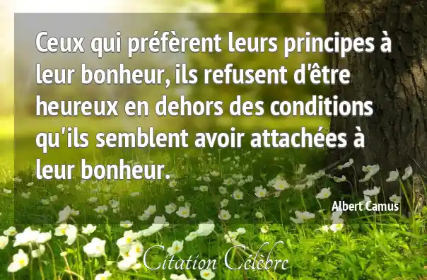 Ceux qui préfèrent leurs principes à leur bonheur, ils refusent d'être heureux en dehors des conditions qu'ils semblent avoir attachées à leur bonheur.
