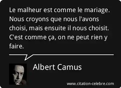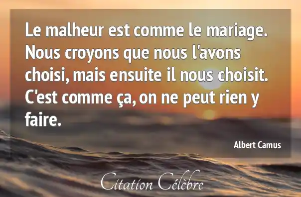 Le malheur est comme le mariage. Nous croyons que nous l'avons choisi, mais ensuite il nous choisit. C'est comme ça, on ne peut rien y faire.