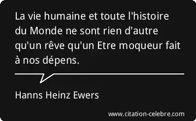 La vie humaine et toute l'histoire du Monde ne sont rien d'autre qu'un rêve qu'un Etre moqueur fait à nos dépens.