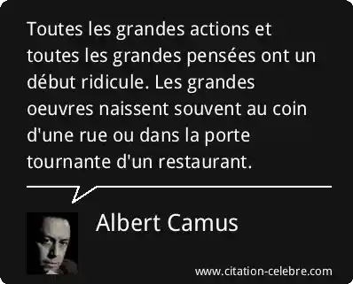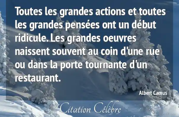 Toutes les grandes actions et toutes les grandes pensées ont un début ridicule. Les grandes oeuvres naissent souvent au coin d'une rue ou dans la porte tournante d'un restaurant.