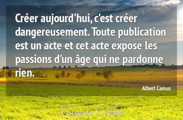 Créer aujourd'hui, c'est créer dangereusement. Toute publication est un acte et cet acte expose les passions d'un âge qui ne pardonne rien.