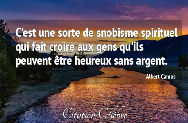 C'est une sorte de snobisme spirituel qui fait croire aux gens qu'ils peuvent être heureux sans argent.