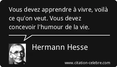 Vous devez apprendre à vivre, voilà ce qu'on veut. Vous devez concevoir l'humour de la vie.