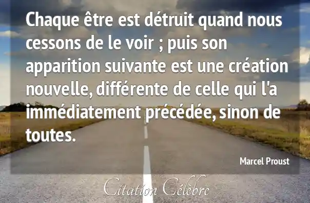 Chaque être est détruit quand nous cessons de le voir ; puis son apparition suivante est une création nouvelle, différente de celle qui l'a immédiatement précédée, sinon de toutes.
