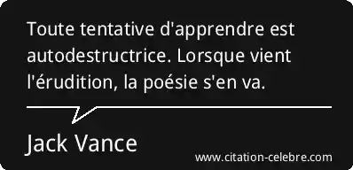 Citation Jack Vance poesie : Toute tentative d'apprendre est autodestructrice. Lorsque vient l'érudition, la poésie...