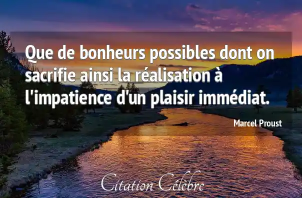 Que de bonheurs possibles dont on sacrifie ainsi la réalisation à l'impatience d'un plaisir immédiat.
