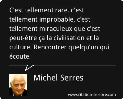 C'est tellement rare, c'est tellement improbable, c'est tellement miraculeux que c'est peut-être ça la civilisation et la culture. Rencontrer quelqu'un qui écoute.