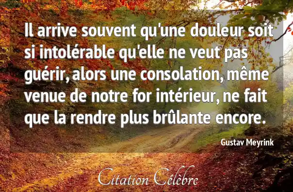 Il arrive souvent qu'une douleur soit si intolérable qu'elle ne veut pas guérir, alors une consolation, même venue de notre for intérieur, ne fait que la rendre plus brûlante encore.