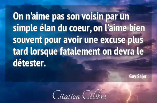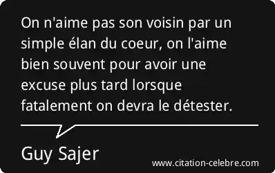 On n'aime pas son voisin par un simple élan du coeur, on l'aime bien souvent pour avoir une excuse plus tard lorsque fatalement on devra le détester.
